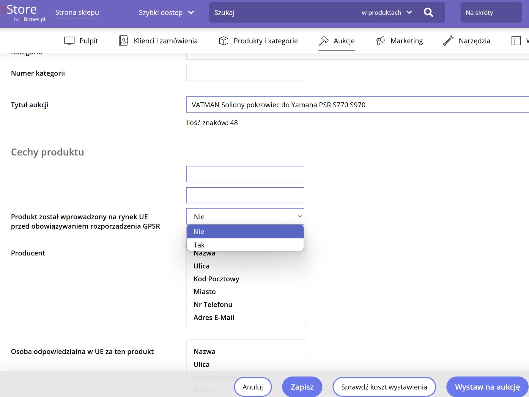 - Zaktualizowaliśmy funkcję wystawiania ofert na Allegro, uwzględniając nowy parametr: „Produkt wprowadzony do obrotu na terenie UE przed 13.12.2024”;